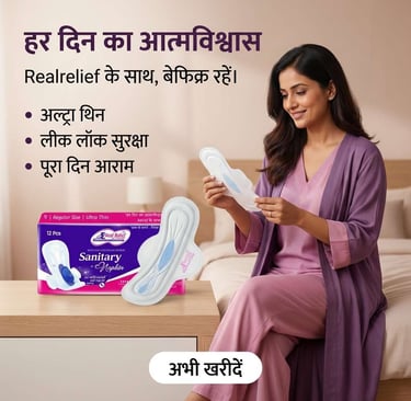Realrelief सिर्फ पैड नहीं, बल्कि महिलाओं के आत्मविश्वास और सशक्तिकरण की पहचान है।