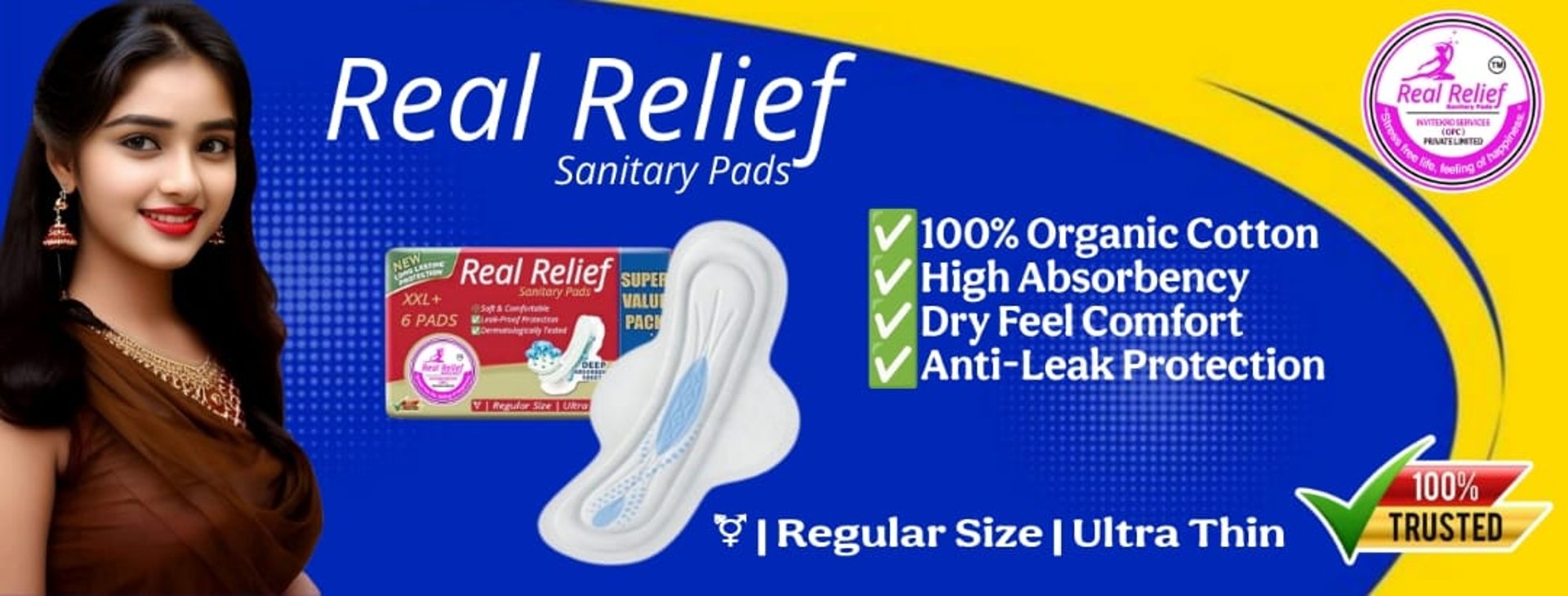 Real Relief सैनिटरी पैड केवल बाहरी उपयोग के लिए बनाए गए हैं और महिला स्वच्छता को ध्यान में रखकर निर्मित किए गए हैं।